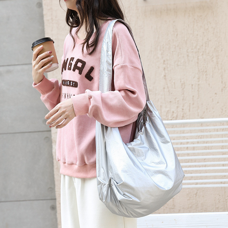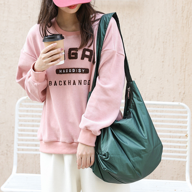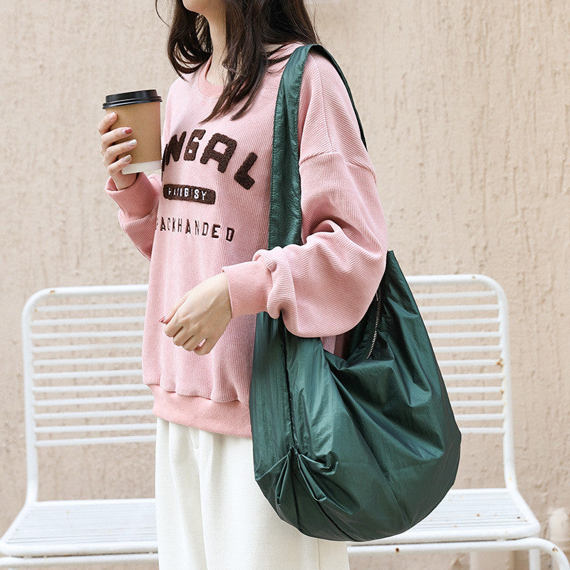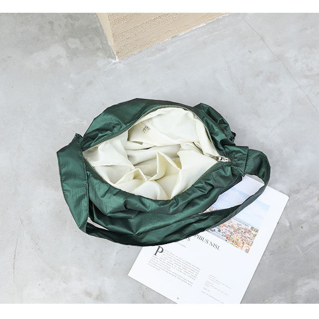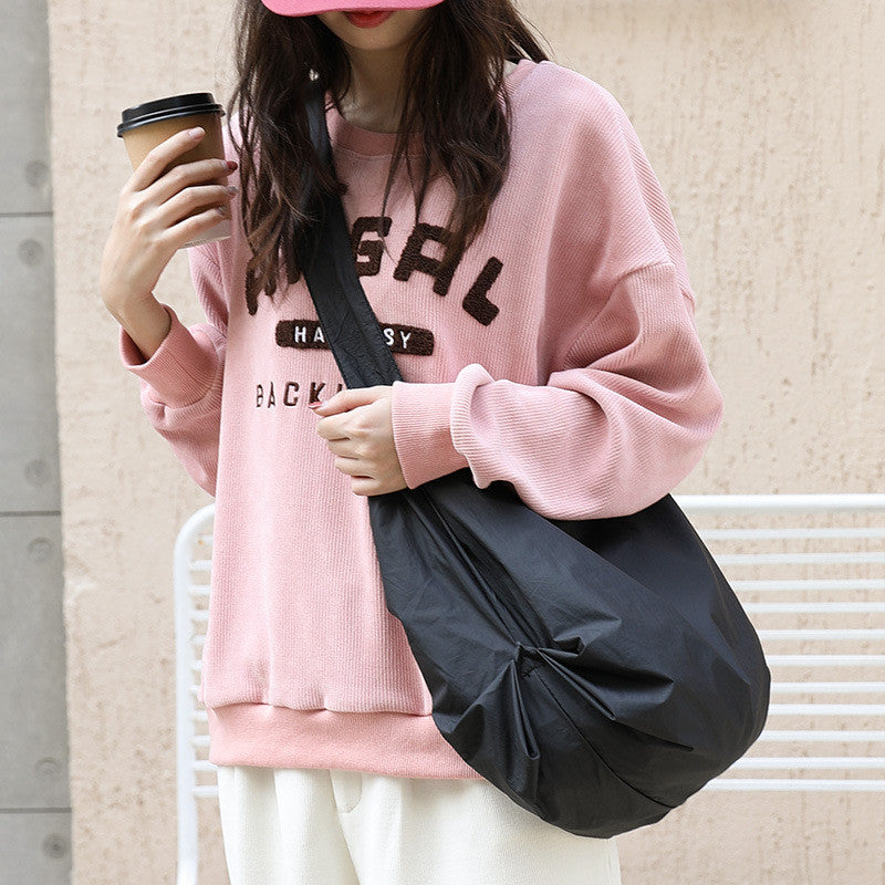Ielgy Japanese Casual Retro One-Shoulder Fashionable Pleated Nylon Cloth Large-Capacity Cross-