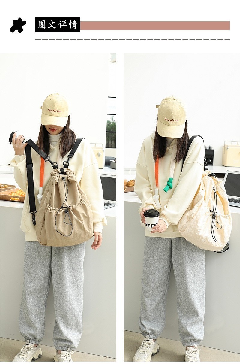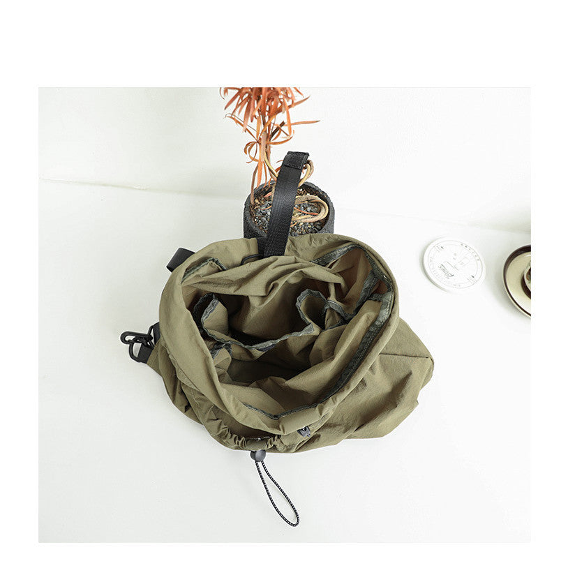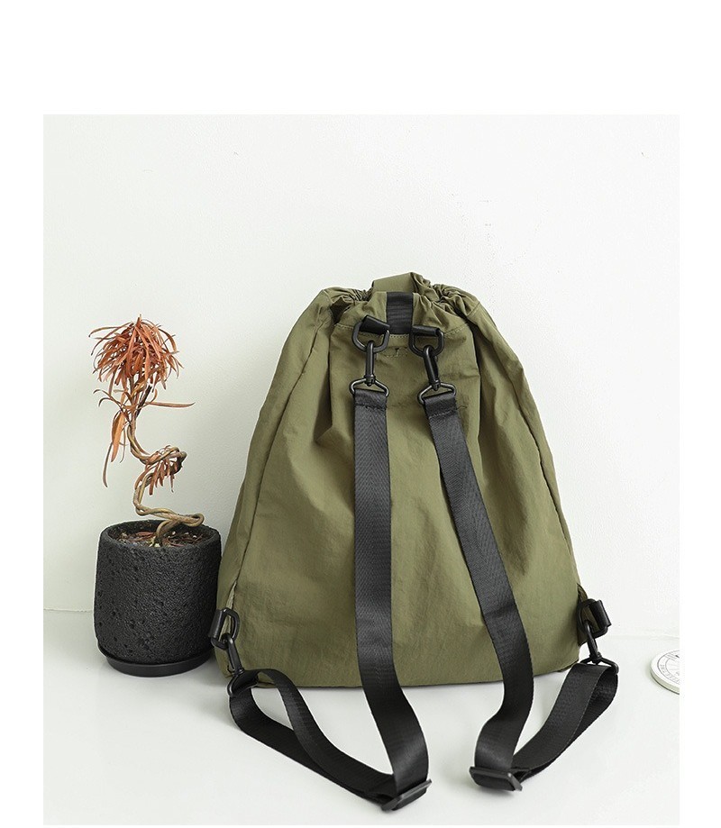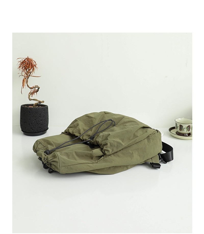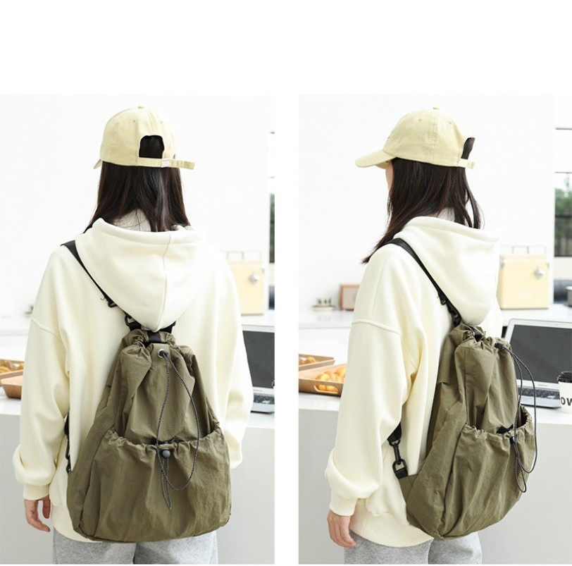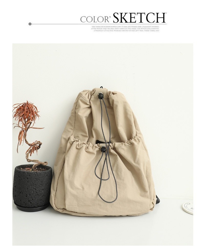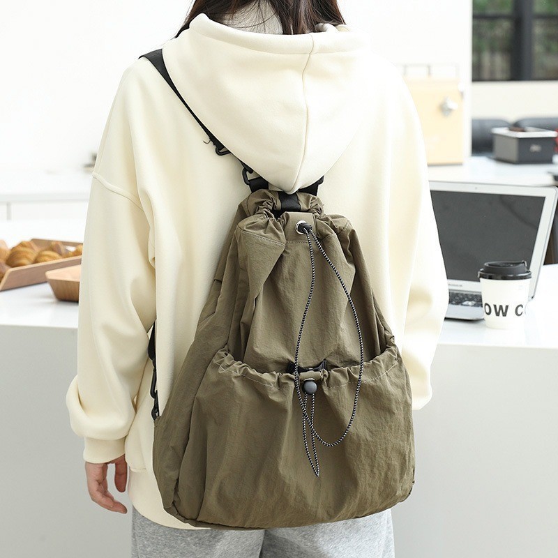 Ielgy Korean Version Casual Literary Canvas Backpack Fashion Nylon Large Capacity School Bag Drawstring Pleated Backpack