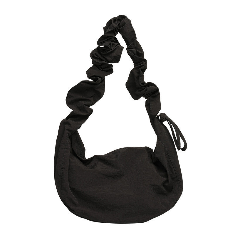 Ielgy Korean Version Casual Literary One-Shoulder Female Bag Pleated Nylon Dumpling Bag Fashion Drawstring Canvas Messenger Bag