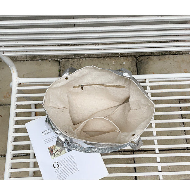 Ielgy Korean Version Casual Retro Tin Foil Handbag Fashion Nylon Solid Color Literary Platinum Shoulder Bag