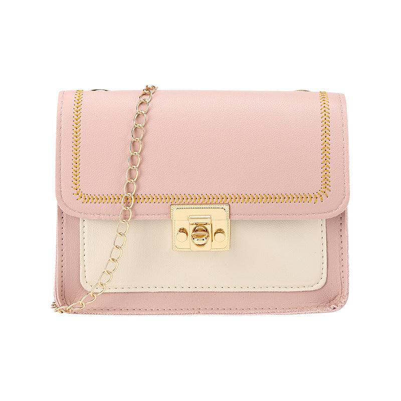 IELGY Korean version Cell phone One shoulder Trendy Lock Chain Diagonal Black Square Women's bag