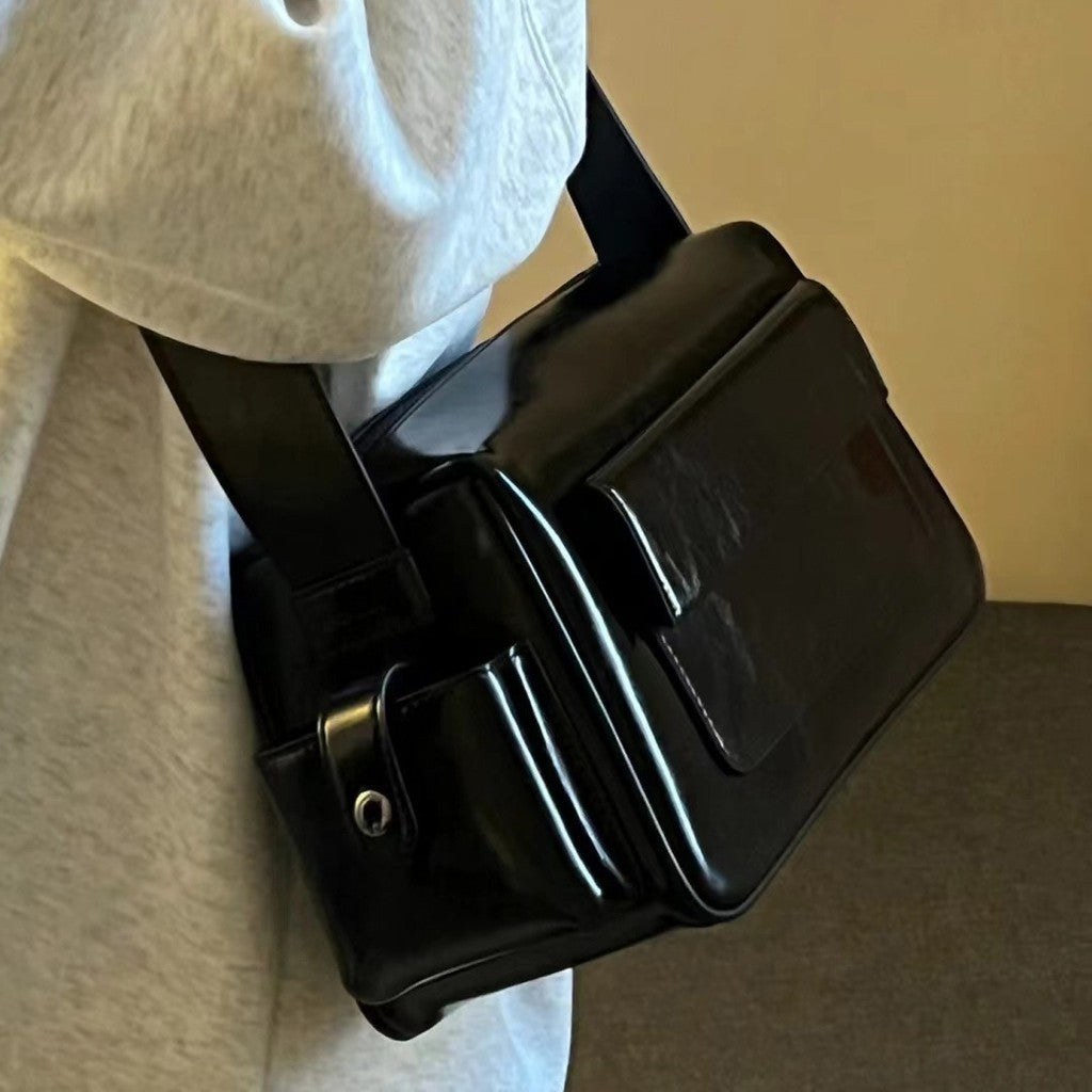 Ielgy Ladies Black Niche Design Commuter All-Match One-Shoulder Messenger Small Square Bag