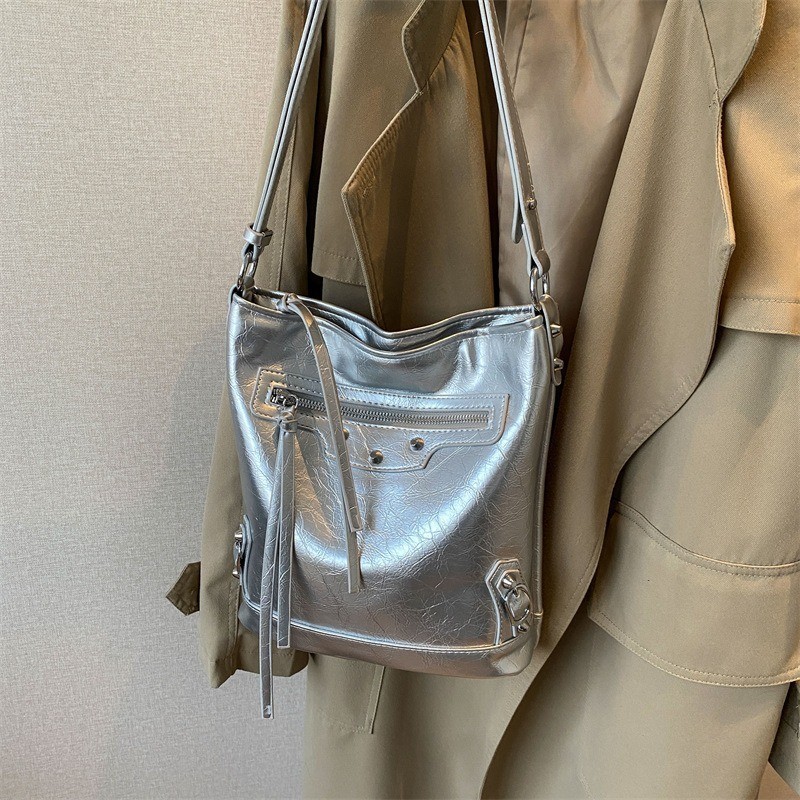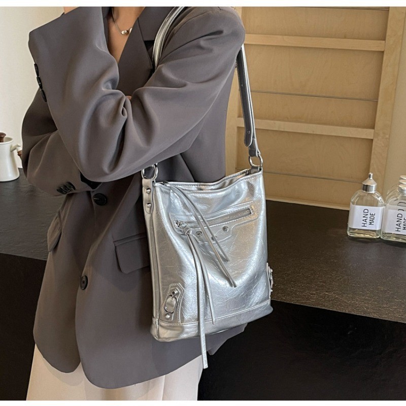 Ielgy Portable Large-Capacity Silver Tote Bag Ladies High-End Korean Version Diagonal One-Shoulder Travel Bag