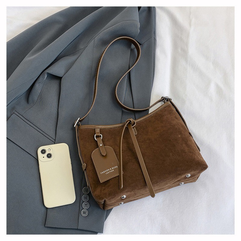 Ielgy Retro Commuter Ladies Shoulder Messenger Bag High-End Texture Niche Tote Bag