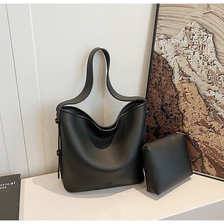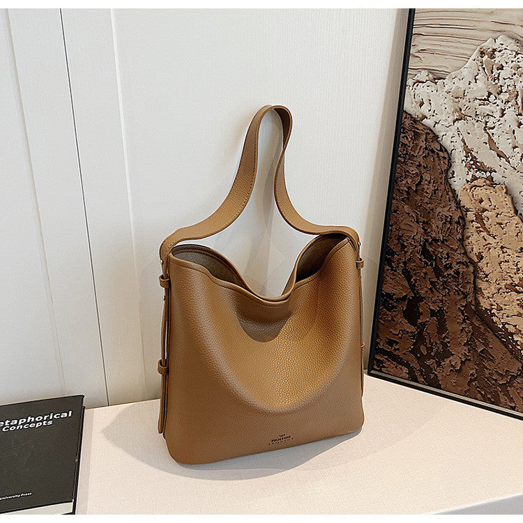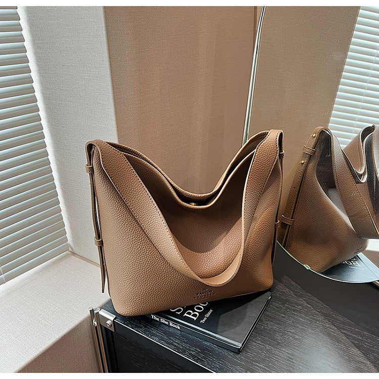 Ielgy Retro Large-Capacity Bucket Bag All-Match Simple Shoulder Tote Bag
