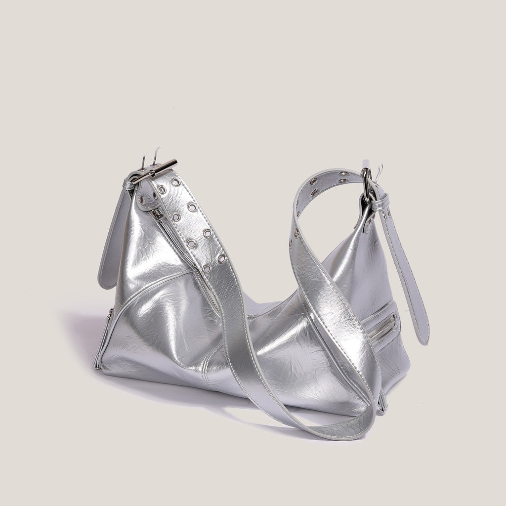 IELGY retro oil wax leather messenger bag, crescent bag, large-capacity versatile single shoulder wide shoulder strap textured women's bag