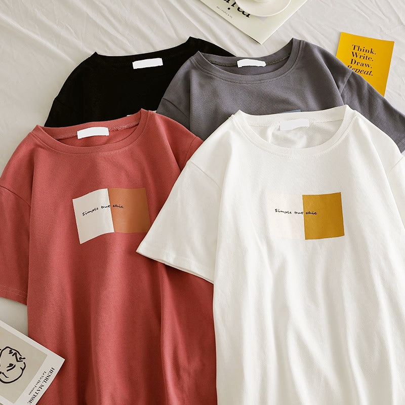 IELGY Short-sleeved t-shirt female summer loose wild ins white t-shirt
