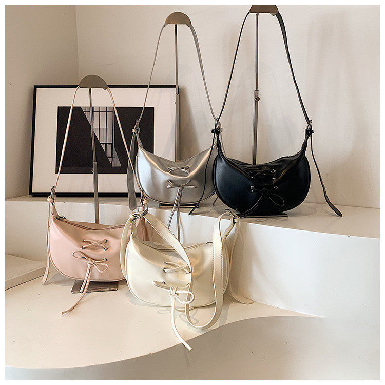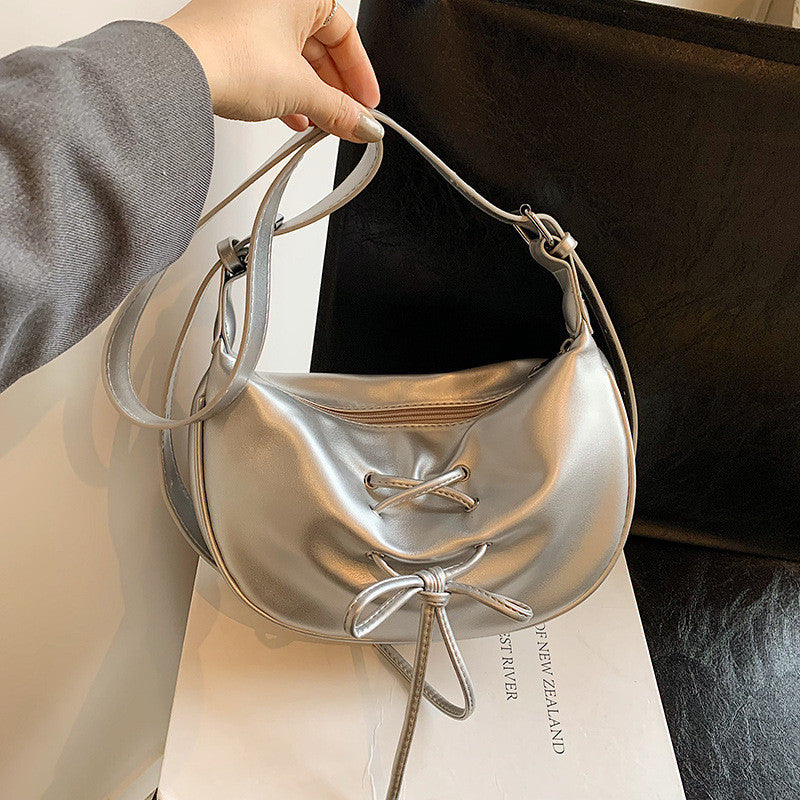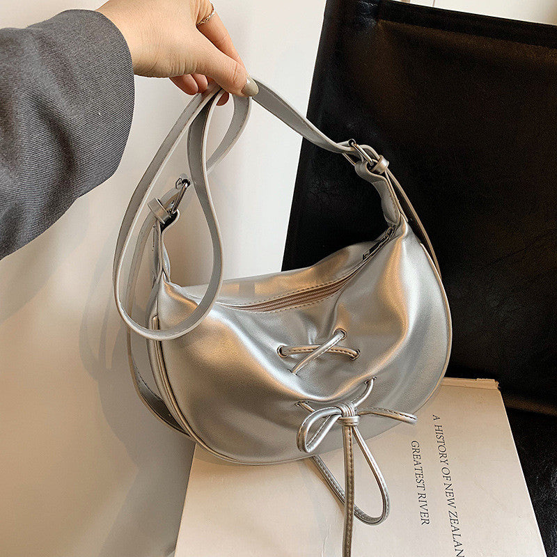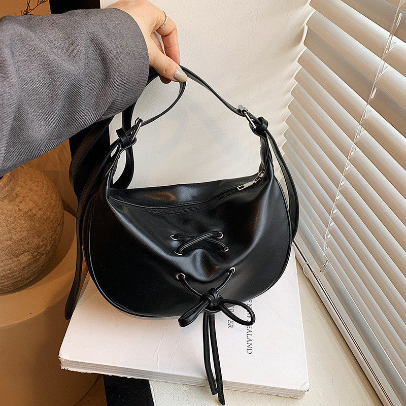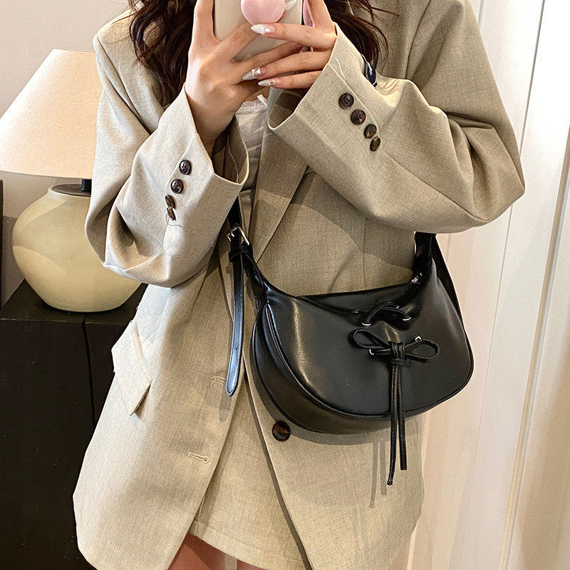 Ielgy Large-Capacity One-Shoulder Tote Bag All-Match Retro Fashion Bow Cross-Body Du