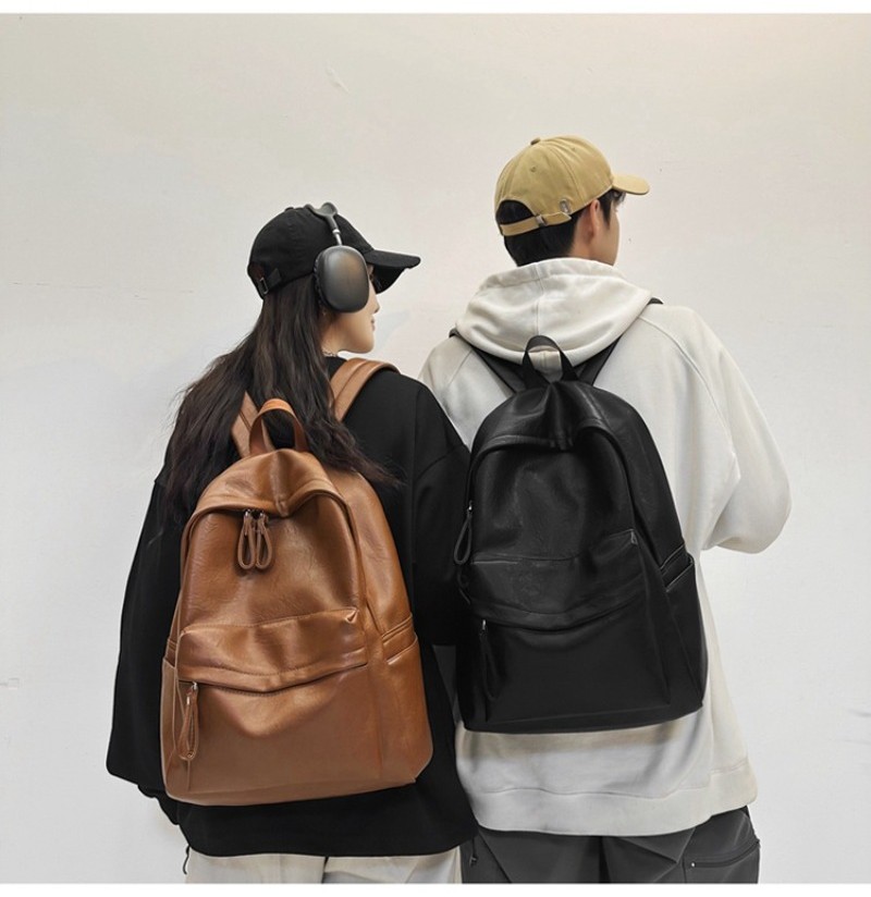 Ielgy pu Pure Color Simple Daily Commuter Backpack Large Capacity Backpack Travel Bag