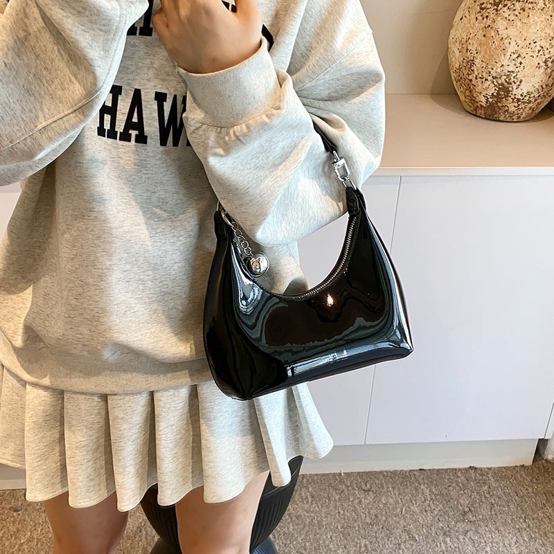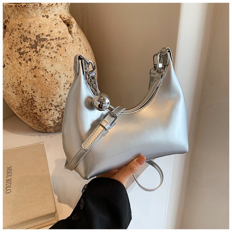 Ielgy Silver Patent Leather Crescent Moon Underarm Bag Korean Version High-End Bell Shoulder Messenger Bag